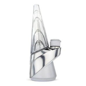 The Indiglow Peak Pro is both subtle and complex. A smooth purple and blue gradient fades over the translucent silicone base and the metal band and then continues upward as it meets the sacred geometry inspired blow molded inner dome and outer cone glass.